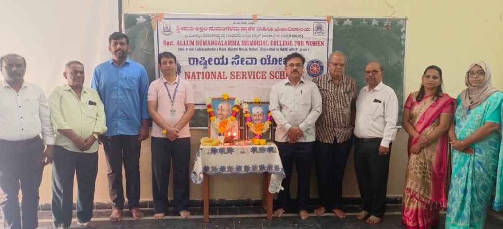 ಬಳ್ಳಾರಿ,ಅ.02:ಕೇಂದ್ರ ಸಂವಹನ ಇಲಾಖೆ, ಬಳ್ಳಾರಿ ಹಾಗೂ ವೀರಶೈವ ವಿದ್ಯಾವರ್ಧಕ ಸಂಘದ ಶ್ರೀಮತಿ ಅಲ್ಲಂ ಸುಮಂಗಳಮ್ಮ ಮಹಿಳಾ ಮಹಾವಿದ್ಯಾಲಯ ಇವರ ಸಂಯುಕ್ತಾಶ್ರಯದಲ್ಲಿ ವಿದ್ಯಾಲಯದ ಐಕ್ಯೂಎಸ್ ಸಿ, ಎನ್ಎಸ್ಎಸ್ ವಿಭಾಗಗಳ ವತಿಯಿಂದ ವಿದ್ಯಾಲಯದ ಸಭಾಭವನದಲ್ಲಿ ಗುರುವಾರ ರಾಷ್ಟ್ರಪಿತ ಮಹಾತ್ಮ ಗಾಂಧಿಯವರ 156ನೇ ಜಯಂತಿ ಹಾಗೂ ಲಾಲ್ ಬಹದ್ದೂರ್ ಶಾಸ್ತ್ರಿ ಅವರ 121 ನೇ ಜಯಂತಿ ಕಾರ್ಯಕ್ರಮ ಆಚರಿಸಲಾಯಿತು.